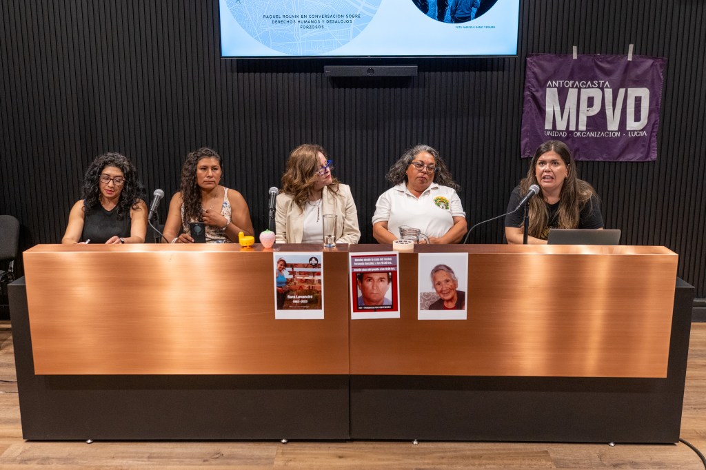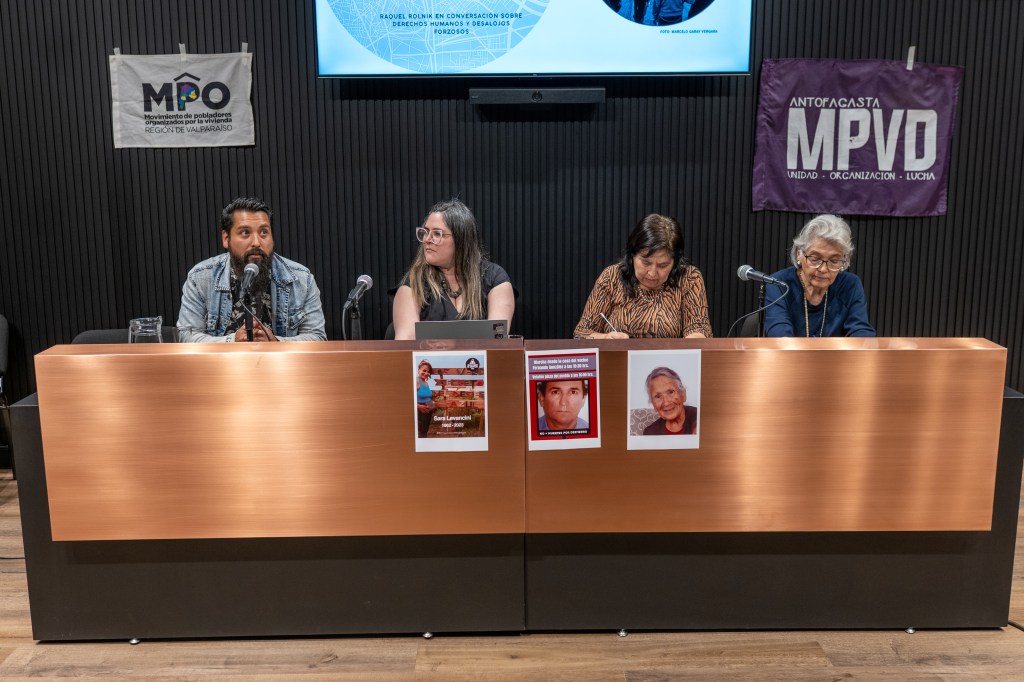 La moderación estuvo a cargo de Verónica Matus, abogada defensora de derechos humanos desde los tiempos de la dictadura, de La Morada, quien hizo ver que en un país con gente sin casa y casas sin gente, desde 2023, el Estado de Chile optó por multiplicar formas de desalojo que, evidentemente, contribuyen a aumentar los problemas habitacionales.